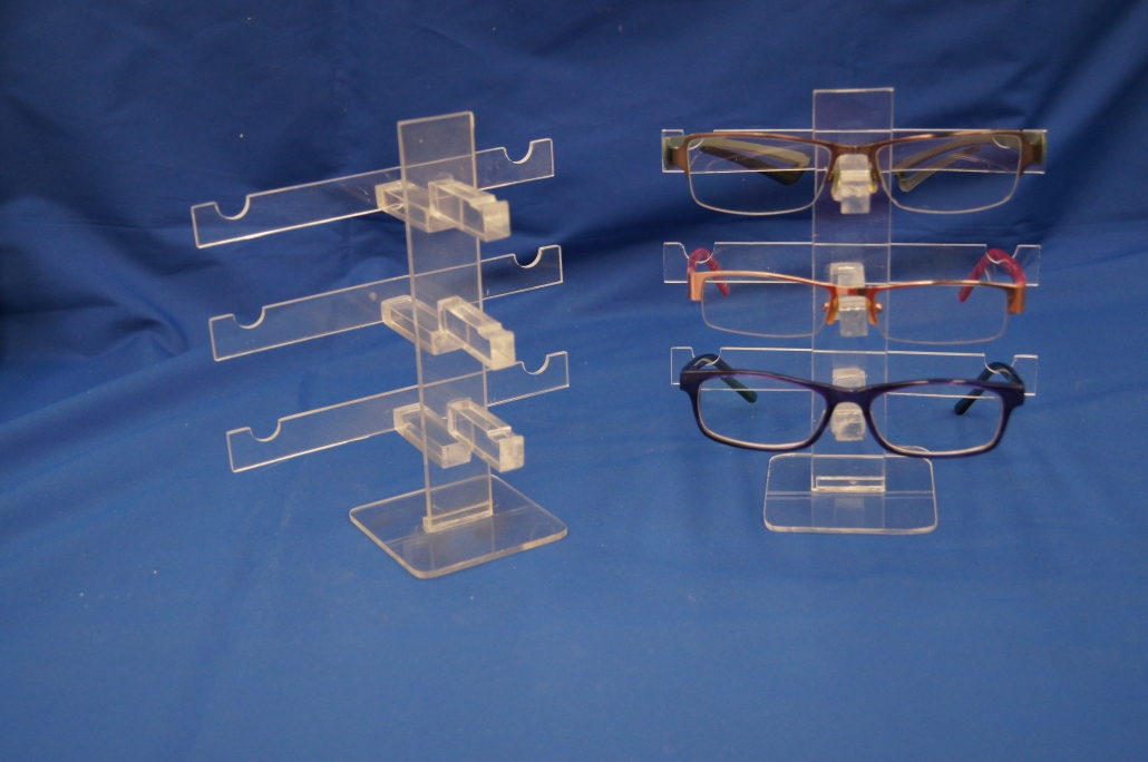 Soporte, exhibidor, organizador de monturas de lentes en diferentes presentaciones de acuerdo a la cantidad de monturas a exhibir y del espacio con el que se cuente.